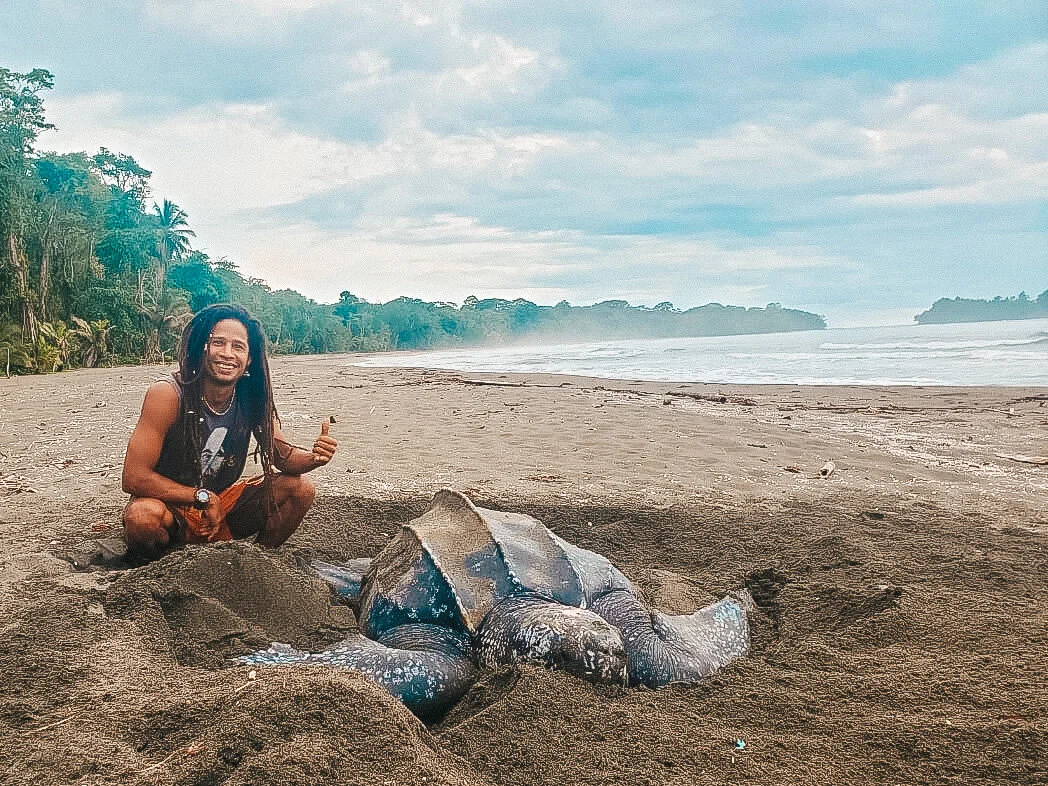 Our beaches have been home to sea turtle nesting for generations. Sadly, the erosion caused by climate change has resulted in many of them seeking new grounds, but we’ll occasionally spot a Leatherback or Green Turtle on the beach. Roberto is helping protect a new Leatherback nest.